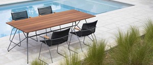Sketch outdoor table with bamboo slats. The beautiful sculpted metal legs give the Sketch table a minimalistic look. The leg construction makes the table completely stable. The bamboo table top is pre-oiled.